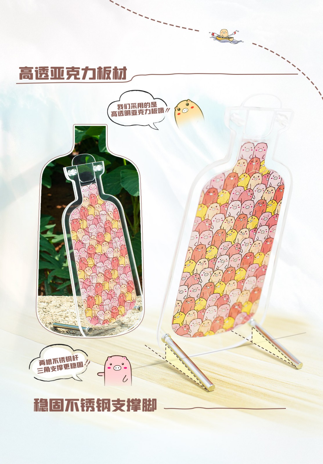 亞克力漂流小豬拼圖擺件